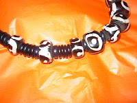 This piece is made of soapstone from Zimbabwe nestled side by side with black wooden pieces. The black and white contrast allow it to frame any outfit… This necklace is sensational whether at work with the standard white top black pants or for a nice evening with the “basic black dress. ” ($50.00)